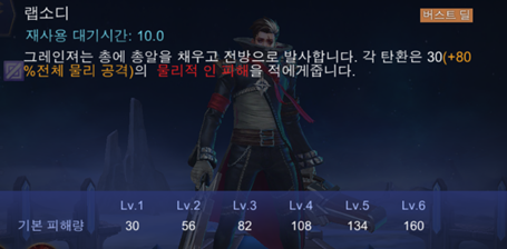 그레인저의 패시브는 6번째 총알이 치명타를 주는 것입니다. ㅎㅎ 그닥 치명적이라고 할 수는 없는데, 약간의 이득을 줍니다.