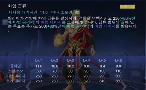 발리어의 두번째 스킬은 "화염급류" ~