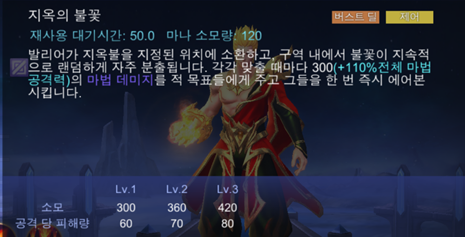 발리어의 첫번째 스킬은 "폭렬화염"~