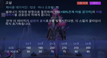 셀레나가 엘프상태에서 적 영웅에게 스킬을 사용하면