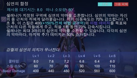 셀레나의 엘프상태 첫번째 스킬은 "심연의 함정" 입니다.