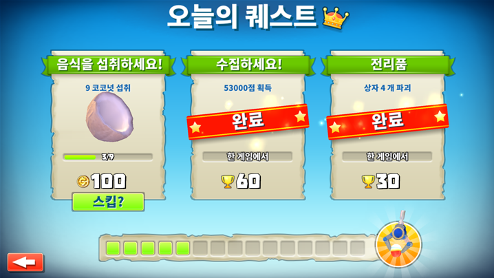 게임중에 퀘스트를 깨면 Gold 또는 트로피를 받을수 있습니다.
