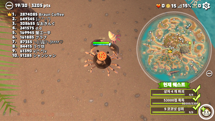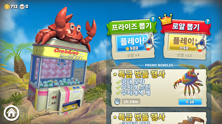 결국 뽑기를 많이 해서 튼튼한 게를 뽑거나 업그레이드 포인트를 많이 획득하는 것입니다.