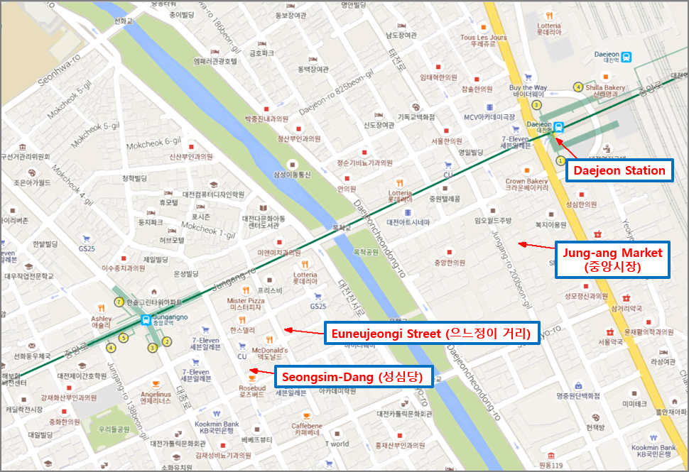 On the way from Daejeon station to Euneujeongi Street, there is "Jung-ang Market".