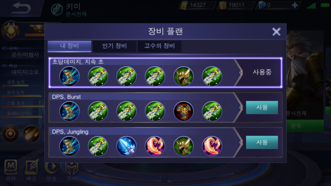예전에, 제가 주로 키미(Kimmy) 를 애용할 때는 아래와 같이 장비 세팅을 많이 했었습니다.
