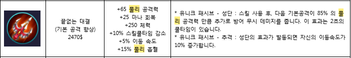 게다가 적영웅의 체력에 따라 +25% 추가 물리공격력도 생기기도 하니 엄청 나네요.