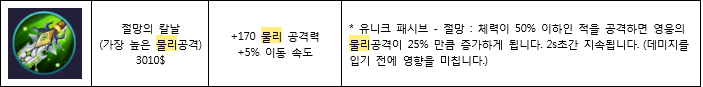 하지만, "절망의 칼날" 템에 비할바는 못되죠~~