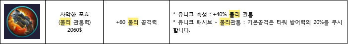 따라서, "사악한 포효" 템의 실질적인 물리공격력은 60 + 40 = 100 이라고 볼 수 있겠습니다. ^^