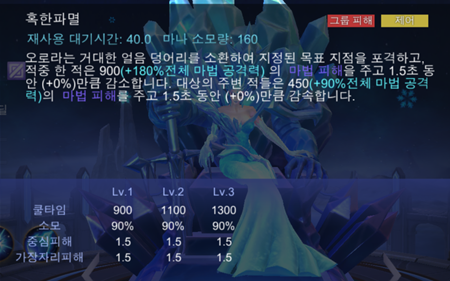 오로라의 모든 스킬은 감속효과를 발휘하는데