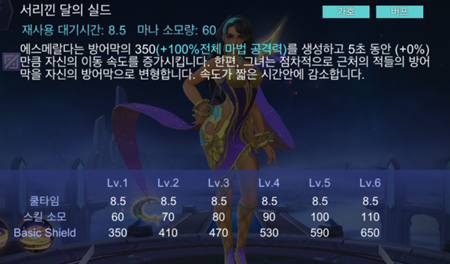 에스메랄다의 첫번째 스킬 "서리낀 달의 쉴드"~