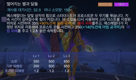 에스메랄다는 1번, 2번 스킬을 번갈아 자주 써야 하기 때문에