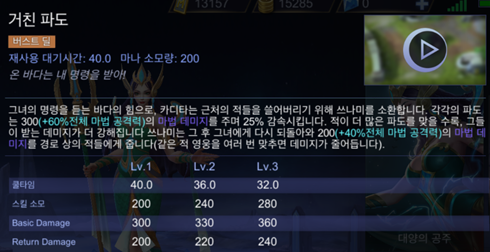 이때 돌아오는 파도에 적이 맞도록 카디타가 이동해주면 데미지를 많이 줍니다.
