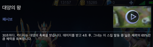 회복되는 양은 30초동안 잃어버린 체력의 65% 입니다.