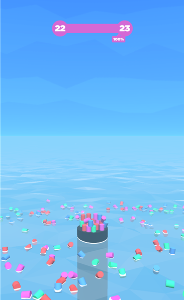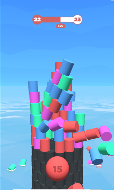 같은 색깔의 원통들이 없어지면서 균형이 흐트러지면 우루루 쓰러지는 방식입니다.