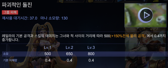 레일라의 모든 스킬은 적을 맞추는 거리가 길어질 수록 더 많은 데미지를 주는 효과가 있습니다.