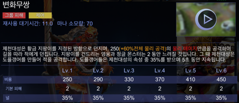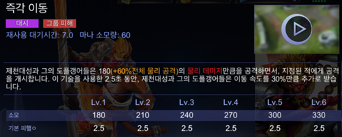 제천대성과 분신들이 동시에 물리대미지를 주고, 이동속도가 증가합니다.
