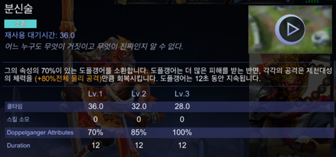 분신은 35%의 파워를 가지고 5초동안 싸우고 없어집니다.