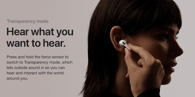 몰입 사운드를 위한 노이즈제거 기능 - Transparency mode for hearing and connecting with the world around you