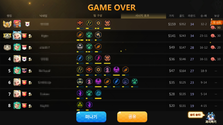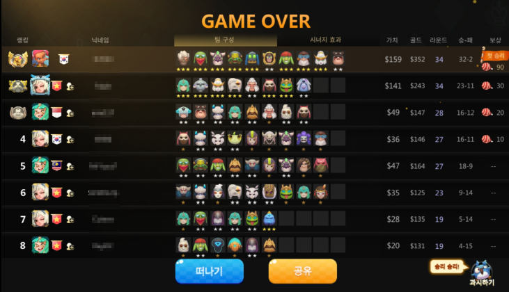 내 캐릭터 10마리 중에 8마리가 3성~~ 이게 말이됨??