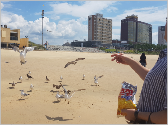 바로 갈매기에게 콘칩 쳐 먹이기 ㅋㅋ