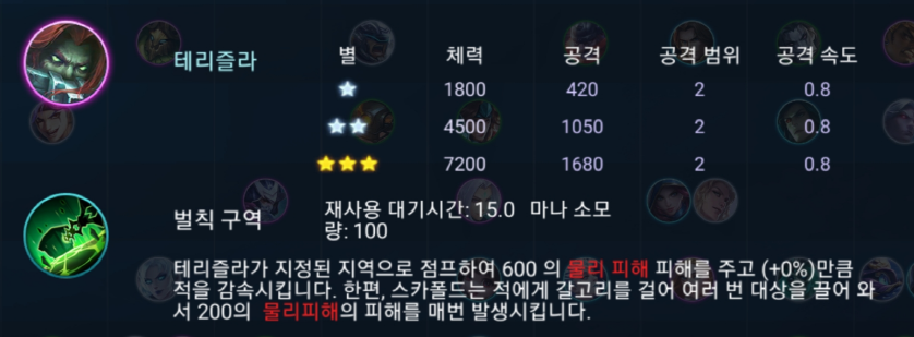 테리즐라의 "벌칙 구역" 스킬을 자주 사용할 수 있게 해줘야 합니다.