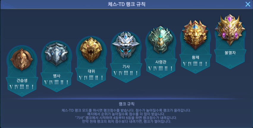 모바일레전드 체스-TD 게임팁 (랭크, Ranking, 계급, 레벨)