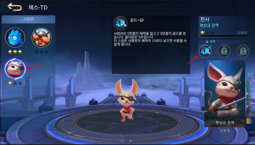 "현상금 검객" 이라는 이름의 애꾸는 쥐세끼 사령관의 능력이 죄다 돈과 관련된 능력입니다.