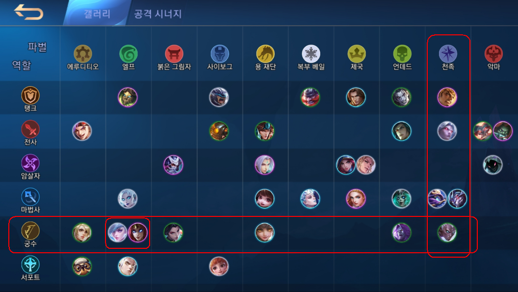궁수에는 "엘프" 파벌 2명이 들어있습니다.