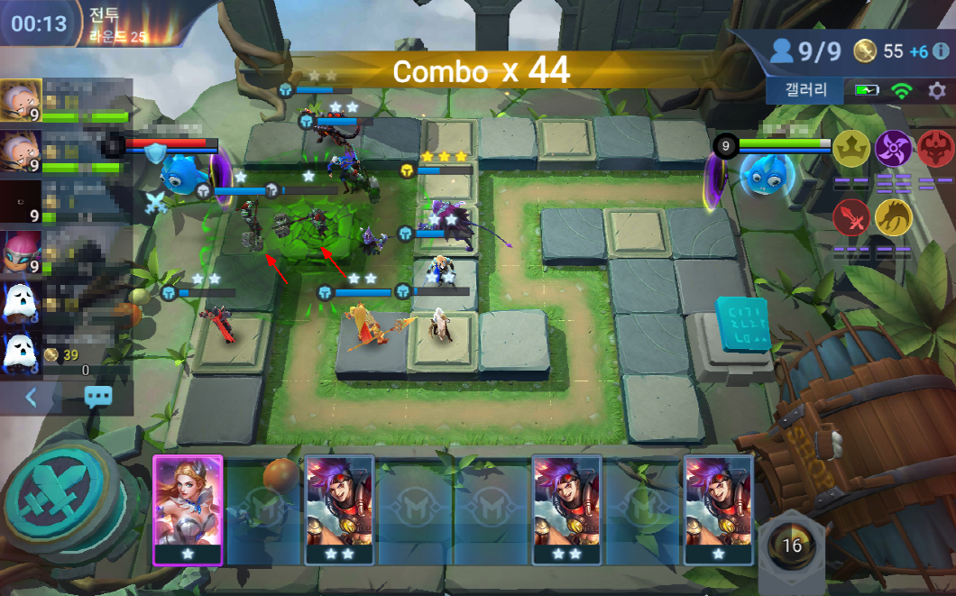 체스-TD 에서는 최대 9명의 영웅을 배치할 수 있기 때문에,