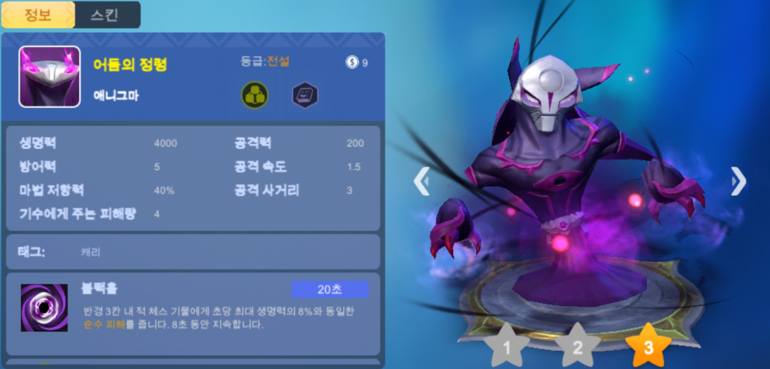 "어둠의 정령"은 블랙홀을 만들고 8초동안 지속적으로 피해를 입히는데, 이게 꽤 쎈편입니다. 블랙홀내에 있는 적들의 체력이 쭉쭉 빠지는게 눈이 보일정도입니다. ㅋㅋ