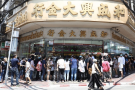 매월 지급되는 정부보조금 5,000바트(약19만원)를 타기위해 사람들이 구름처럼 몰려들었다. 음식을 사기위한 현금 마련을 위해 갖고있던 금붙이 등을 팔려고 보석상 앞에 길게 줄을 서고 있다. 경제침체에 따른 스트레스와 절망으로 자살율도 증가하고 있다.