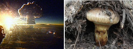 터지는 모습(왼쪽)이 딱 송이버섯(오른쪽) 모양과 닮았네요.