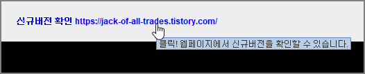 위와 같이 "신규버전 확인 https:// ... " 라벨위에 마우스로 가져가면 마우스커서가 손가락 모양으로 바뀌고 툴팁 텍스트를 보여주도록 Label Control 의 속성을 설정합니다.