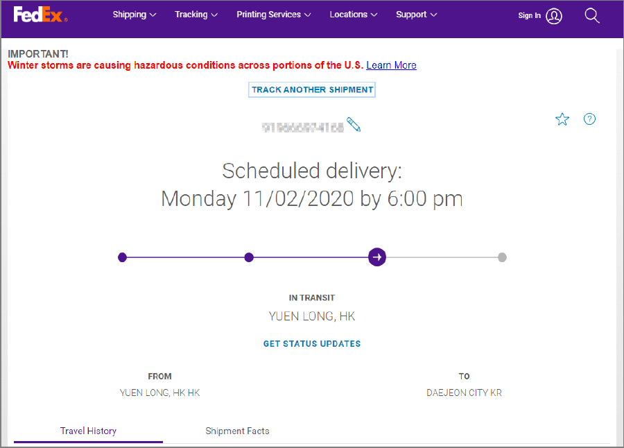 언제까지 도착할 거라는 것과 현재 어디쯤 와있는지 확인할 수 있습니다.