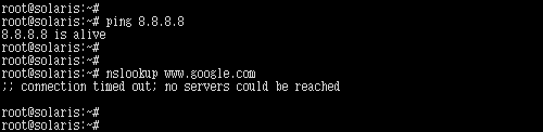 솔라리스11 dns 에러 - (nslookup) connection timed out; no servers could be reached