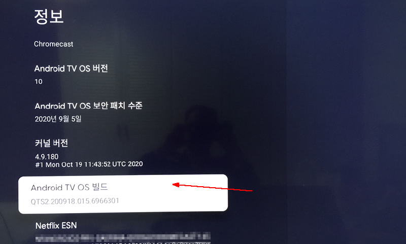 5) "Android TV OS 빌드" 부분을 여러번 클릭