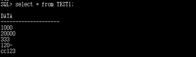 SQL> select to_number(data) from TEST1;