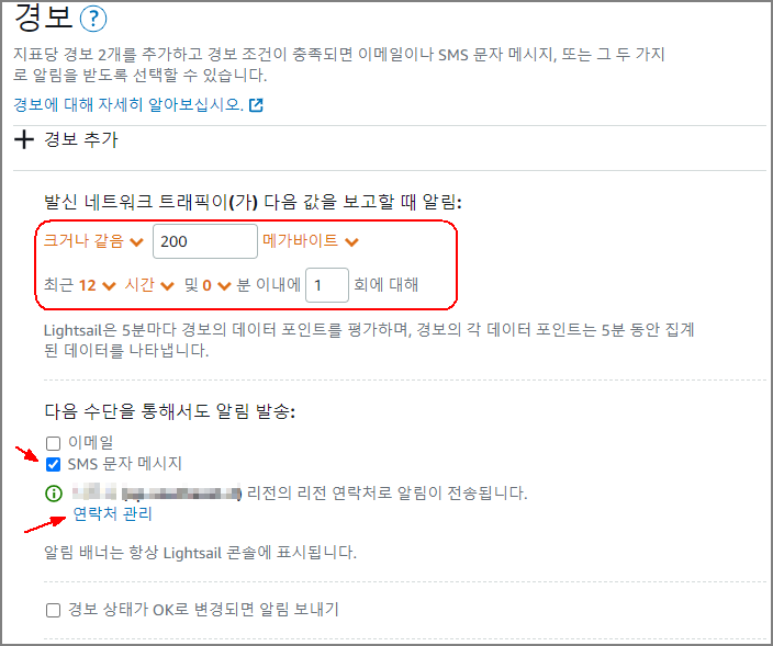 아마존 라이트세일 뿐만이 아니라, 모든 클라우드 서비스는 항상 오버리지(용량초과)에 따른 요금폭탄 가능성이 있기 때문에, 이런 경보메시지 설정이 매우 중요합니다.