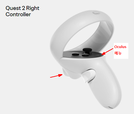 오른손 터치 컨트롤러에서 'O' 모양이 그려져 있는 [Oculus 메뉴] 를 누른상태에서,