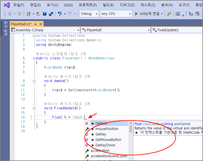 2021. 1. 2. 23:54유니티를 처음 설치하고 Visual C# 스크립트 생성후, 더블클릭해서 Visual Studio 에서 코드를 작성할 때,