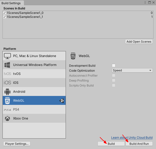 유니티 매뉴얼상에는 WebGL로 빌드할때 [Build] 한 다음에 실행하지 말고, [Build And Run] 버튼을 눌러서 실행하면 된다고 되어 있습니다.
