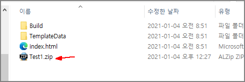 사이트에 등록하기 위해서는, 유니티에서 WebGL 로 빌드한 파일들을 zip 파일로 묶어서 하나의 파일로 만들어야 합니다.