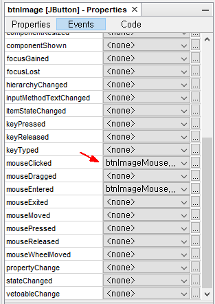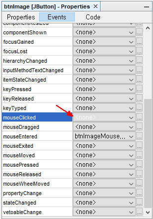 위에서처럼 mouseClicked 이벤트에 상태가 <node> 으로 바뀌면, 소스화면에 있던 btnImageMouseClicked 이벤트 메소드 함수부분이 싹 사라집니다.