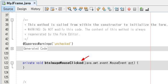넷빈즈에서 자동으로 생성된 이벤트(Event) 핸들러 메소드 함수 제거하는 방법 본문