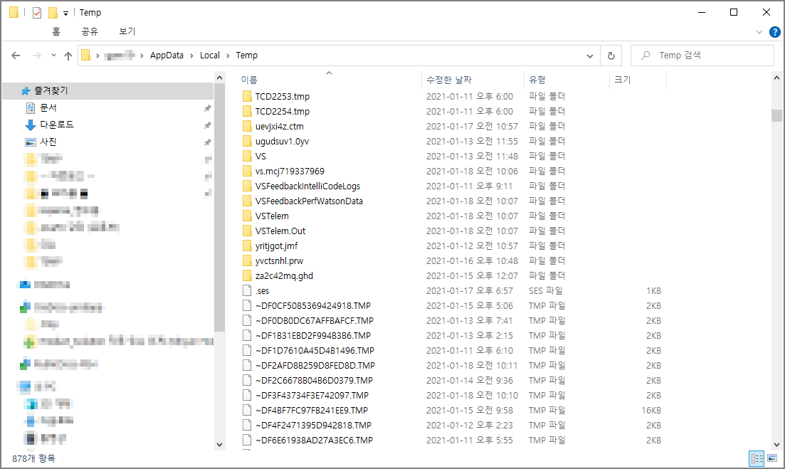 임시로 Temporary 파일들을 만들었으면 해당 프로그램들이 알아서 잘 지워주면 좋은데, 그렇지 못한 경우가 많습니다.