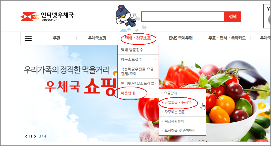 우리집앞 우체국이 당일특급 서비스를 하고 있는지는 직접 집앞 우체국에 확인해보는게 빠릅니다.