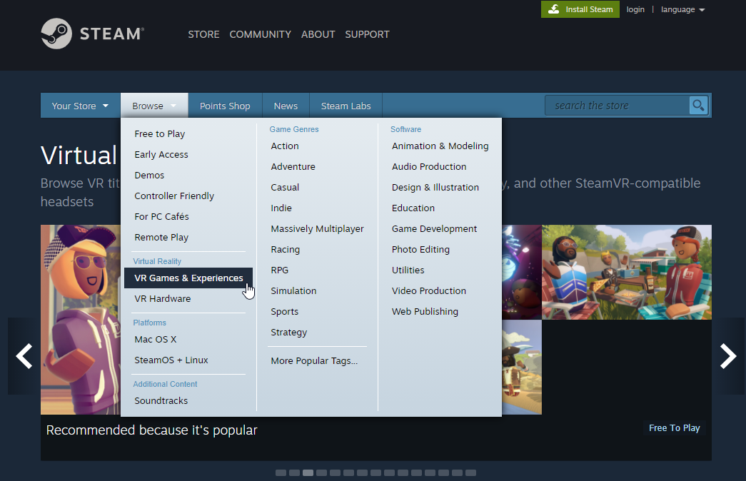 여기에서도 "VR 전용 게임"들을 구매할 수 있습니다.