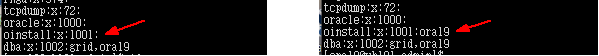 안써주면 왼쪽같이 보이고, -G oinstall,dba 라고 해주면 오른쪽 같이 보이게 된다고 합니다.