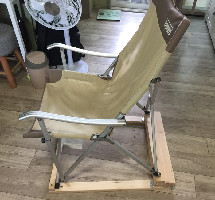 나무 받침대를 만들어서 그 위에 캠핑의자를 놓았습니다. 딱 좋네요^^