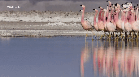 2021. 8. 29. 11:01남미의 소금연못에 사는 플라밍고들의 그룹댄스 장면입니다.
